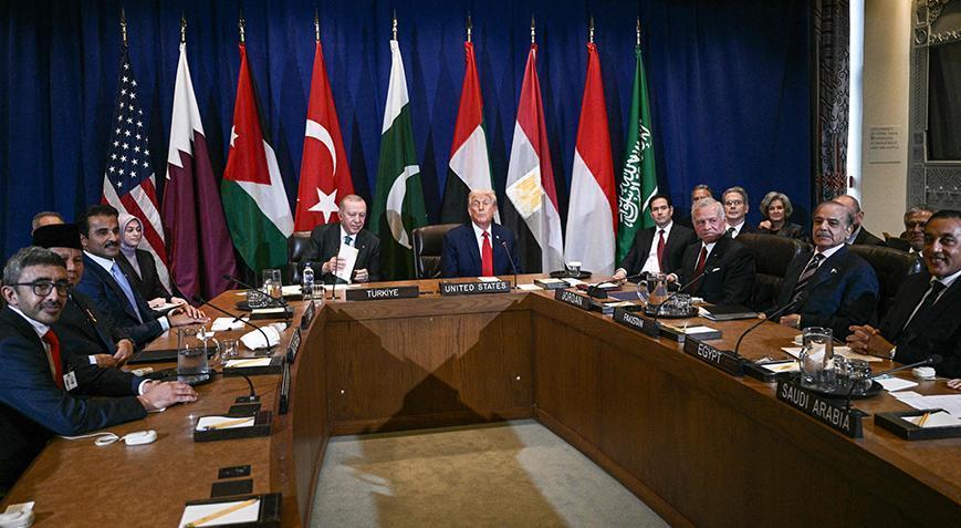 Cumhurbaşkanı Recep Tayyip Erdoğan ile ABD Başkanı Donald Trump'ın da katıldığı Birleşmiş Milletler (BM) Genel Kurulu marjında düzenlenen Gazze konulu toplantı yapıldı. BM binasında düzenlenen toplantı basın kapalı gerçekleştirilirken, toplantıda Cumhurbaşkanı Erdoğan ile ABD Başkanı Trump yan yana oturdu. Toplantıya, Türkiye ve ABD'nin yanı sıra Endonezya, Katar, Suudi Arabistan, Birleşik Arap Emirlikleri, Ürdün, Pakistan ve Mısır'ı temsilen devlet veya hükümet başkanları katıldı.