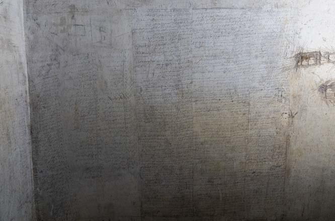 Arapça "Sana sığındık ya Ali", "Seni özledim", "Annem", "En zor ayrılık", "Allah'ım bizi kurtar", "Bu kabus yarın son bulacak" ve "İnsanlık ihanet, yalan ve zülüm" gibi sözlerin yazıldığı duvarlarda ağaçlar, evler, bulutlar, gökyüzü, hapse düşen arkadaşların isimlerinin olduğu listeler, zamanı takip edebilmek için takvimler, grafitiler, günleri saymak için çentikler ve tablolar içindeki günlükler de duvar yazılarında yer aldı.