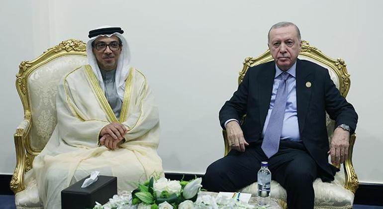 Cumhurbaşkanı Recep Tayyip Erdoğan, Şarm El-Şeyh Barış Zirvesi'ne katılmak için bulunduğu Mısır'da, Birleşik Krallık Başbakanı Keir Starmer ve Birleşik Arap Emirlikleri Veliaht Prensi Mansur bin Zayid Al Nahyan ile bir araya geldi.