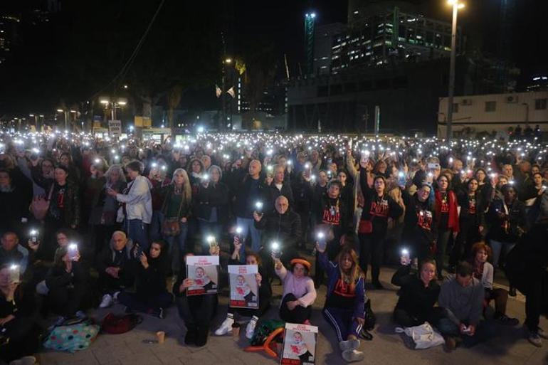 Gazze Şeridi’nde tutulan İsrailli esirlerin yakınları seslerini duyurabilmek için protestolarını sürdürüyor. Esirler ve Kayıp Kişilerin Aileleri Forumu tarafından organize edilen protesto için esir yakınları, İsrail’in başkenti Tel Aviv’de bulunan Kirya Askeri Üssü’nün önünde toplandı. Esirlerin serbest bırakılması çağrısında bulunan göstericiler, ellerinde esirlerin fotoğraflarını taşıdı. Göstericiler ayrıca, “Herkes dönene kadar durmayacağız” yazılı pankart açtı. Protesto sırasında Gazze Şeridi’ndeki insani ara kapsamında serbest bırakılan İsrailli bazı esirler de konuşma yaptı.