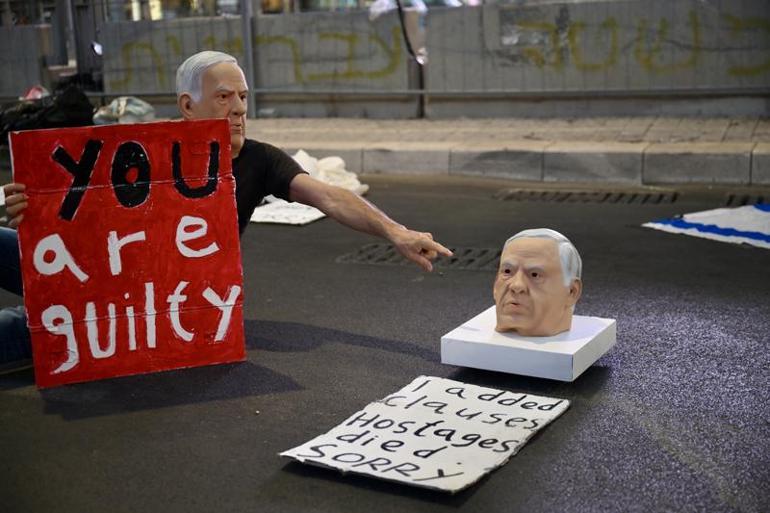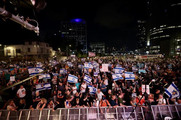 İsrail’de esir yakınları ve onlara destek olmak isteyen binlerce gösterici başken Tel Aviv’de bir araya geldi. Kirya Askeri Üssü yakınlarında toplanan binlerce İsrailli Başbakan Binyamin Netanyahu ve hükümetine Gazze Şeridi’nde ateşkes ve esir anlaşması müzakerelerinde sergiledikleri politika nedeniyle tepki gösterdi. Devletin sabotajcısı olarak nitelendirilen Netanyahu için “Suçlusun”, “Doğrudan hapse gir” pankartları açan İsrailliler, esir anlaşmasının bir an önce imzalanmasını talep ederken, istifa çağrısı yaptı.