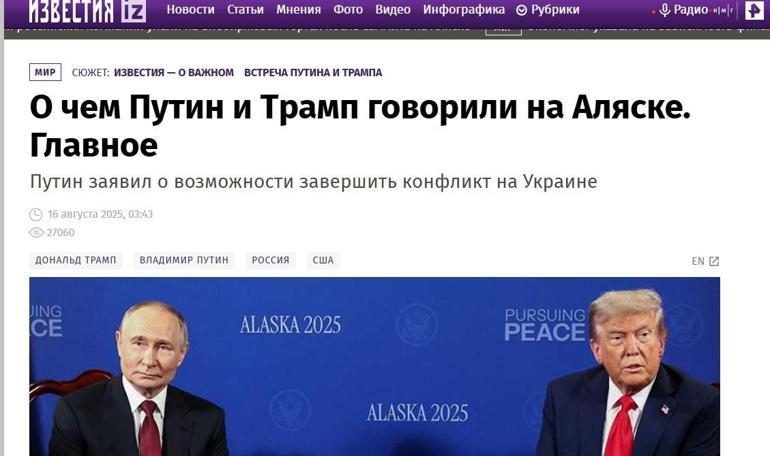 "Sonuçta, devlet başkanlarıyla birlikte küçük bir odaya Putin’in yardımcısı Yuri Uşakov, Dışişleri Bakanı Sergey Lavrov, Trump'ın özel temsilcisi Steven Whitcoff ve ABD Dışişleri Bakanı Marco Rubio girdi. Kısa bir fotoğraf çekiminin ardından Amerikan gazeteciler yüzünden hızla kaosa dönüşen kapalı kapılar ardında görüşmelere başlandı."