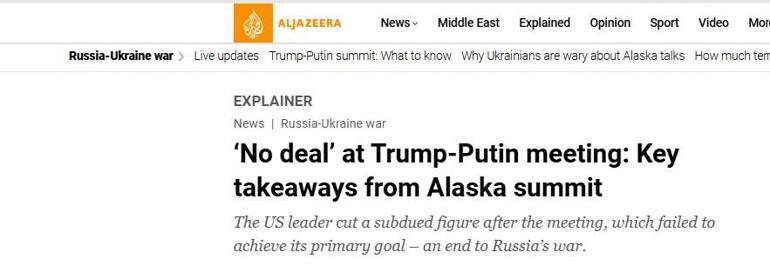 Katar merkezli Al Jazeera "Trump-Putin buluşmasında anlaşma yok" başlığı atarken ekledi:
