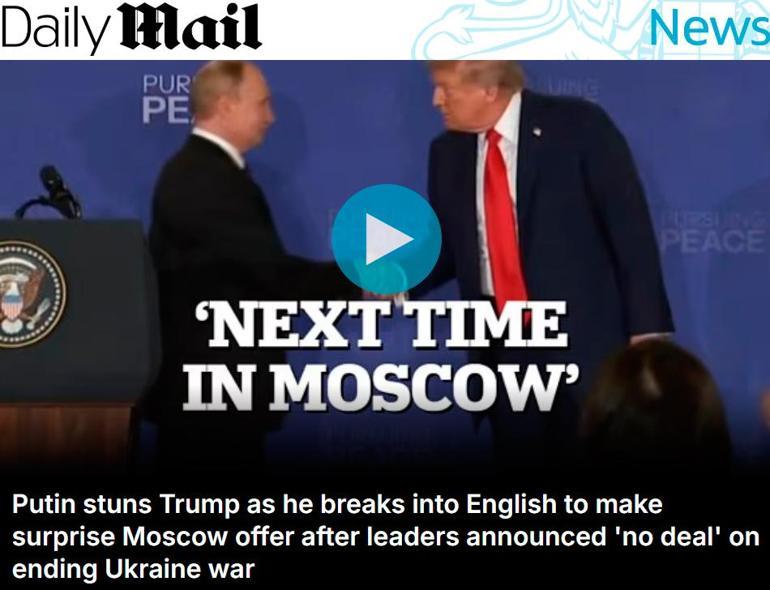 İngiliz gazetesi Daily Mail "Putin, Ukrayna savaşını bitirme konusunda 'anlaşma yok' açıklamasının ardından İngilizce konuşarak Trump'ı şaşırttı ve Moskova daveti yaptı" başlığı attı ve ekledi: