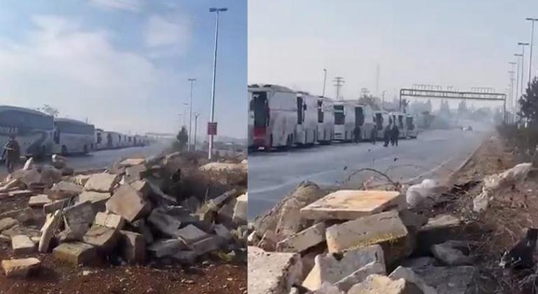 Öte yandan Halep'i terk etmesi beklenen terör örgütü mensuplarını taşıyacak çok sayıda otobüs, Leramun Kavşağı'nda toplanmaya başladı.