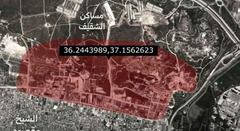 Suriye ordusu, Halep'in Şeyh Maksud Mahallesi'nde terör örgütü YPG/SDG unsularının yuvalandığı yerlerin haritalarını paylaşarak bu noktaların hedef alınmasının planladığını belirterek sivillerin bu alanlardan uzak durmaları istedi.