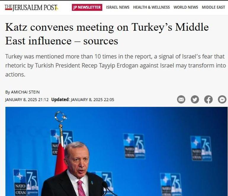 İsrail Savunma Bakanı İsrael Katz, iki yetkilinin The Jerusalem Post'a yaptığı açıklamaya göre Çarşamba akşamı Türkiye ile ilgili özel bir güvenlik toplantısı düzenledi. Haberde "toplantı Suriye'de Esad rejiminin çöküşü ve HTŞ'nin yükselmesinden sonra Türkiye'nin bölgedeki etkisinin artmasının, İsrailli yetkililer tarafından ne kadar önemli görüldüğünü ve hatta korkulduğunu gösteriyor" ifadeleri yer aldı.