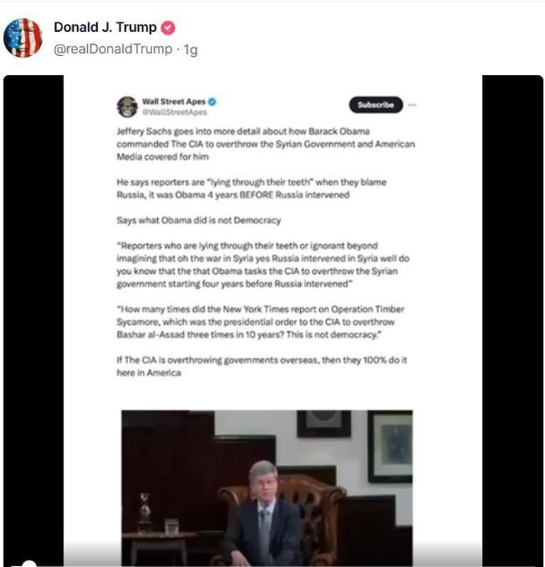 ABD'nin seçilmiş Başkanı Donald Trump ise bugün Orta Doğu'daki savaşlardan Netanyahu'yu sorumlu tutan ABD'li ekonomist Jeffrey Sachs'ın Netanyahu'ya küfür ettiği bir videoyu yorumsuz paylaşmıştı.