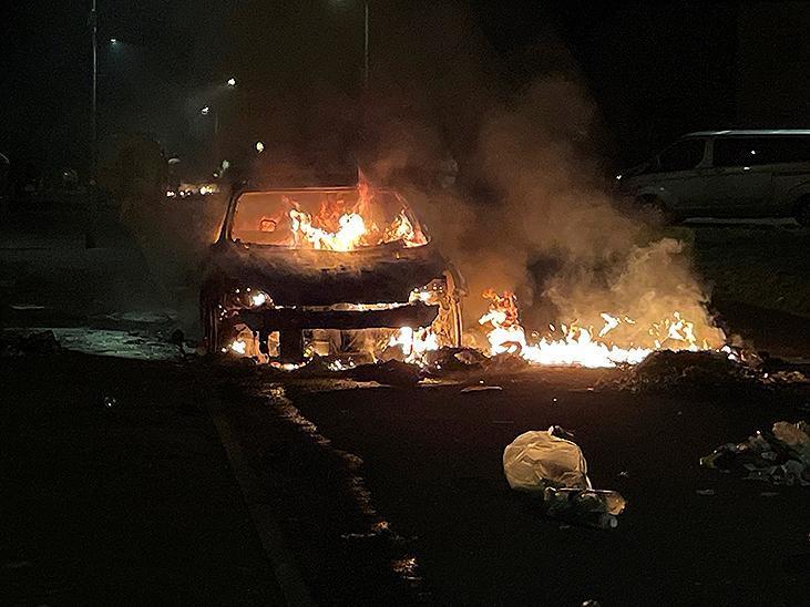 Sokakta park edilmiş araçlar ve çöp kutularının ateşe verildiği olaylar sabaha kadar devam etti. Sosyal medyaya yansıyan görüntülerde, kalabalığın polisle kıyasıya çatıştığı ve alevlerin tüm sokağı sardığı görüldü. Video kayıtlarında ayrıca, gökyüzünde süzülen bir polis helikopteri de kadraja girdi.