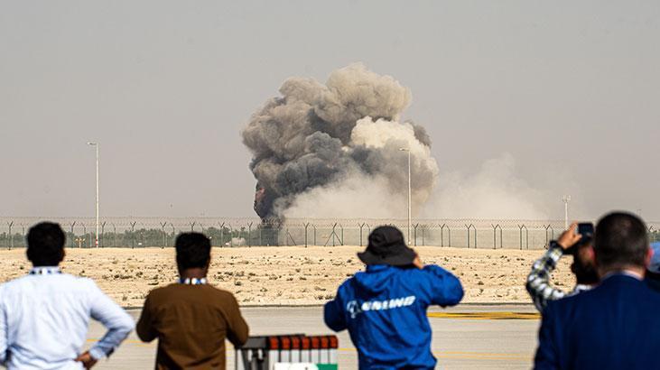 Dubai’de düzenlenen uluslararası hava gösterisi Airshow 2025'te Hindistan Hava Kuvvetleri'ne ait HAL Tejas savaş uçağı seyircilerin gözleri önünde yere çakıldı.