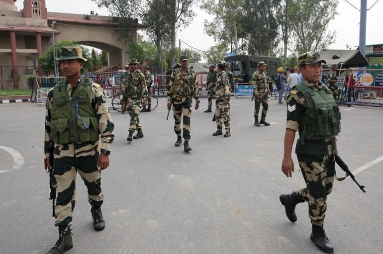 Hindistan Sınır Güvenlik Gücü güvenlik görevlileri, Hindistan'ın Pakistan'daki saldırısının ardından Amritsar yakınlarındaki Attari sınırında Hindistan ve Pakistan arasındaki sınır kapılarına giden barikatlarda güvenlik önlemleri aldı.
