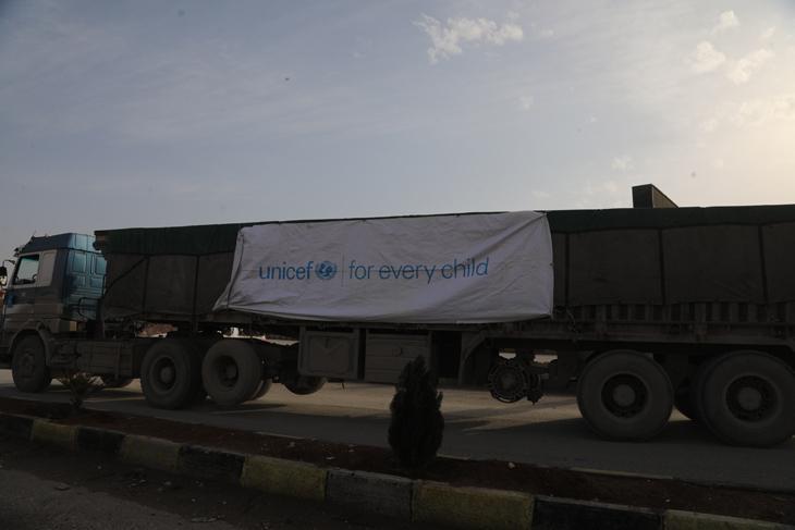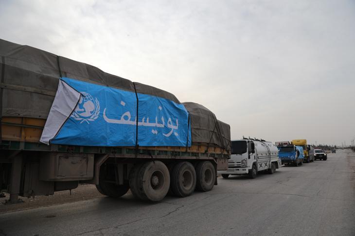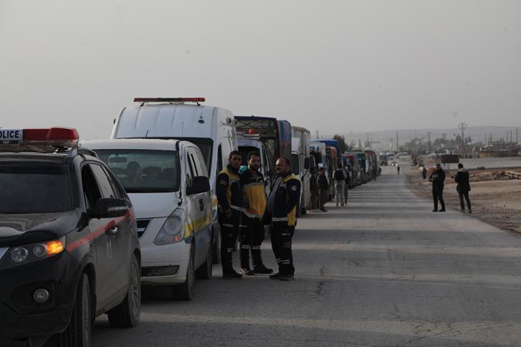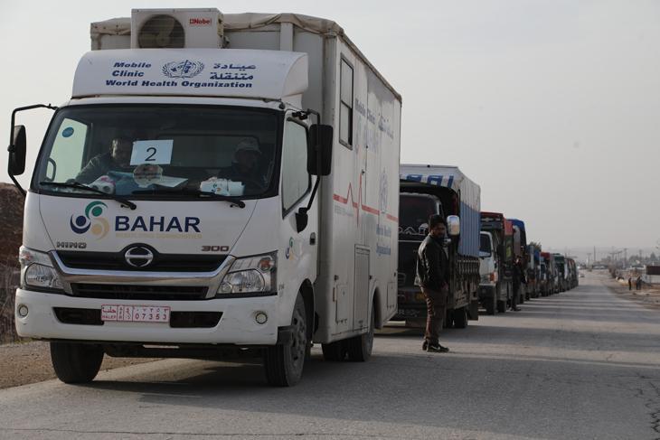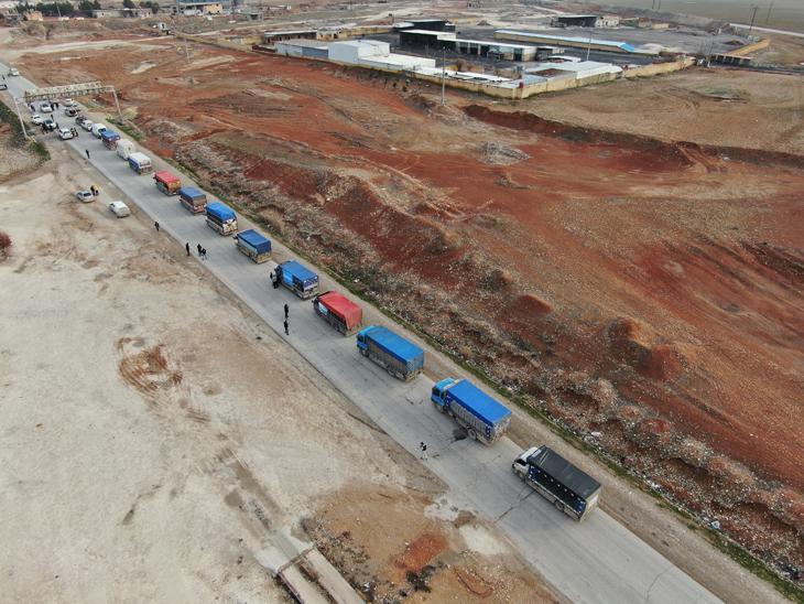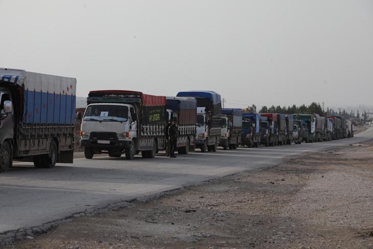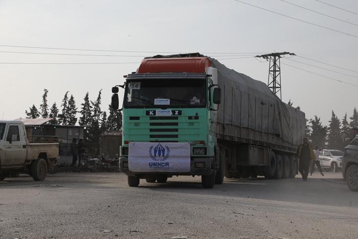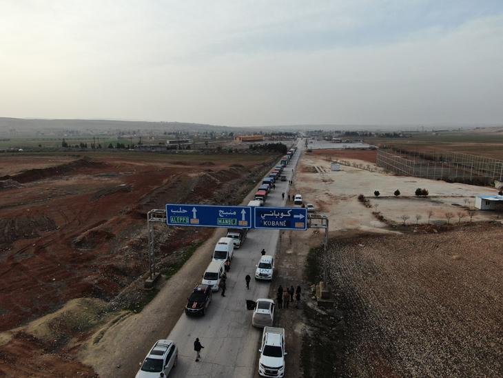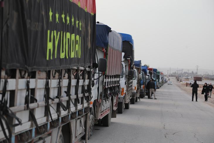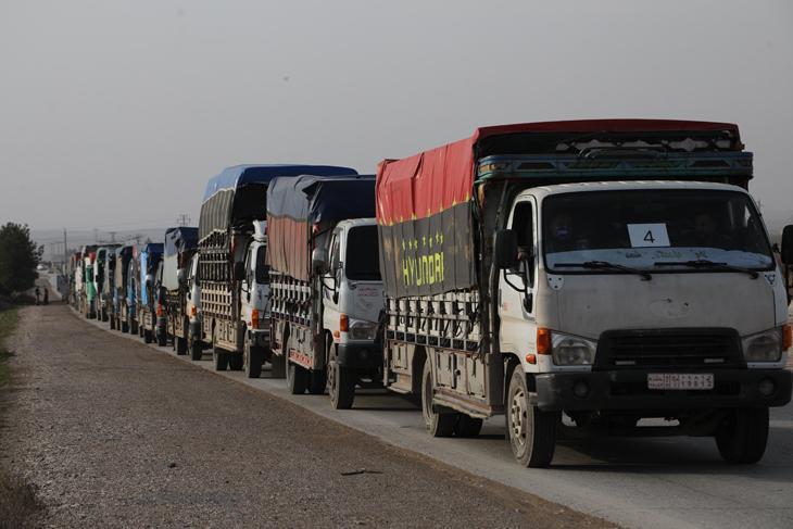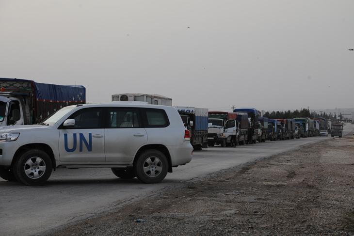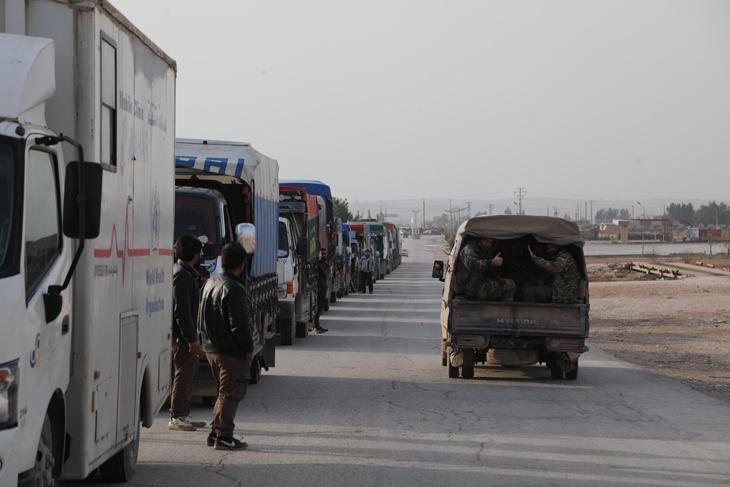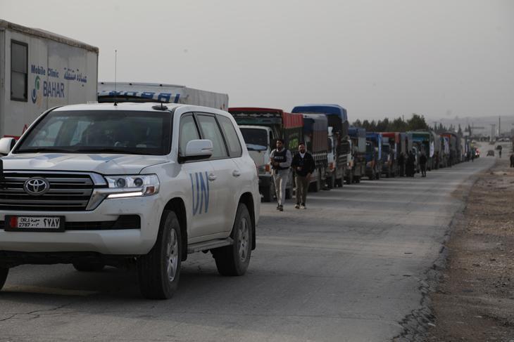 Bölgedeki AA muhabiri, Birleşmiş Milletler'e bağlı farklı kuruluşlara ait pankartların asılı olduğu 24 kamyonetten oluşan insani yardım konvoyunun da aynı şekilde köye giriş yaptığını aktardı.