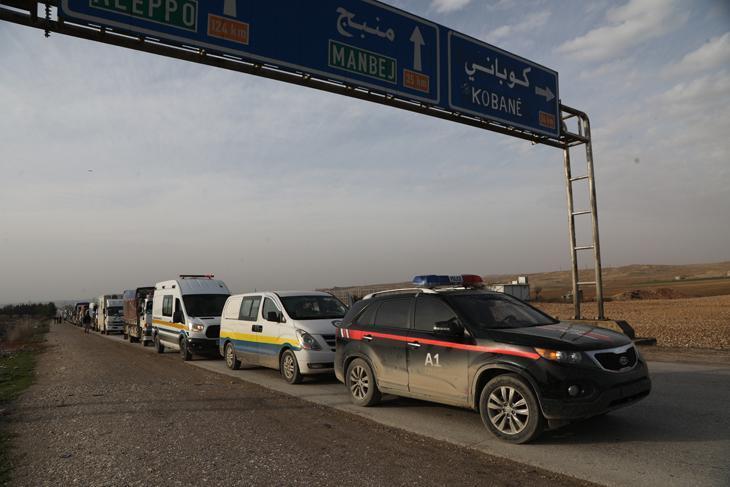 Suriye İçişleri Bakanlığına bağlı güvenlik güçlerinden oluşan konvoy, YPG işgali altındaki Şuyuk köyüne girerek bölgede konuşlanmaya başladı.