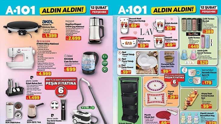 A101 Aldın Aldın 12 Şubat Perşembe aktüel kataloğu yayımlandı. Bu hafta A101 mağazalarında satışa sunulan ürünler arasında Dikiş Makinesi, Cam Su Isıtıcı, Erkek Bakım Seti, Katmer ve Gözleme Sacı, Kahve ve Baharat Öğütme Makinesi, Saç Düzleştirici, Mini Waffle Makinesi, Kablosuz Etiket Yazıcı, Mantı Kalıbı ve daha birçok ürün yer alıyor. İşte satışa sunulan ürünlerin tam ve eksiksiz listesi...