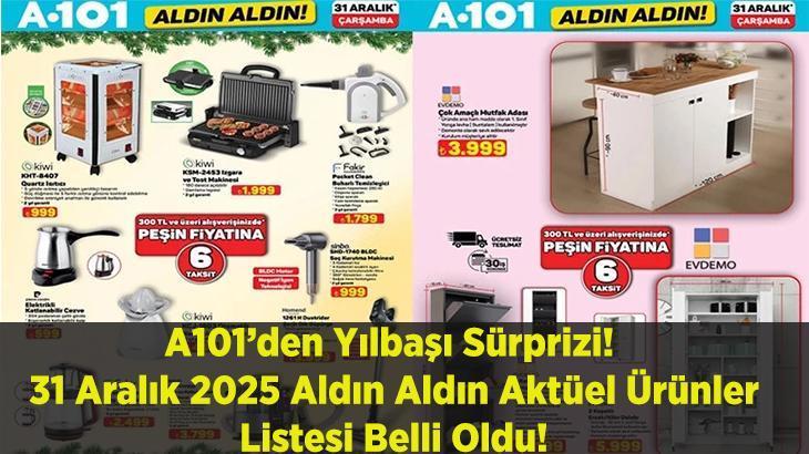 A101 aktüel afişi bu hafta da dikkat çeken fırsatlarla geliyor. 999 TL’lik ısıtıcıdan 79.990 TL’lik üç tekerlekli moped modeline kadar birçok ürün, 31 Aralık 2025 Çarşamba günü A101 mağazalarında satışa sunulacak. Ayrıca A101 bu hafta kataloğu tam listesi bambaşka ürünlerle de dikkat çekiyor. Peki A101 aktüel ürünler kataloğu bu hafta neler sunuyor?