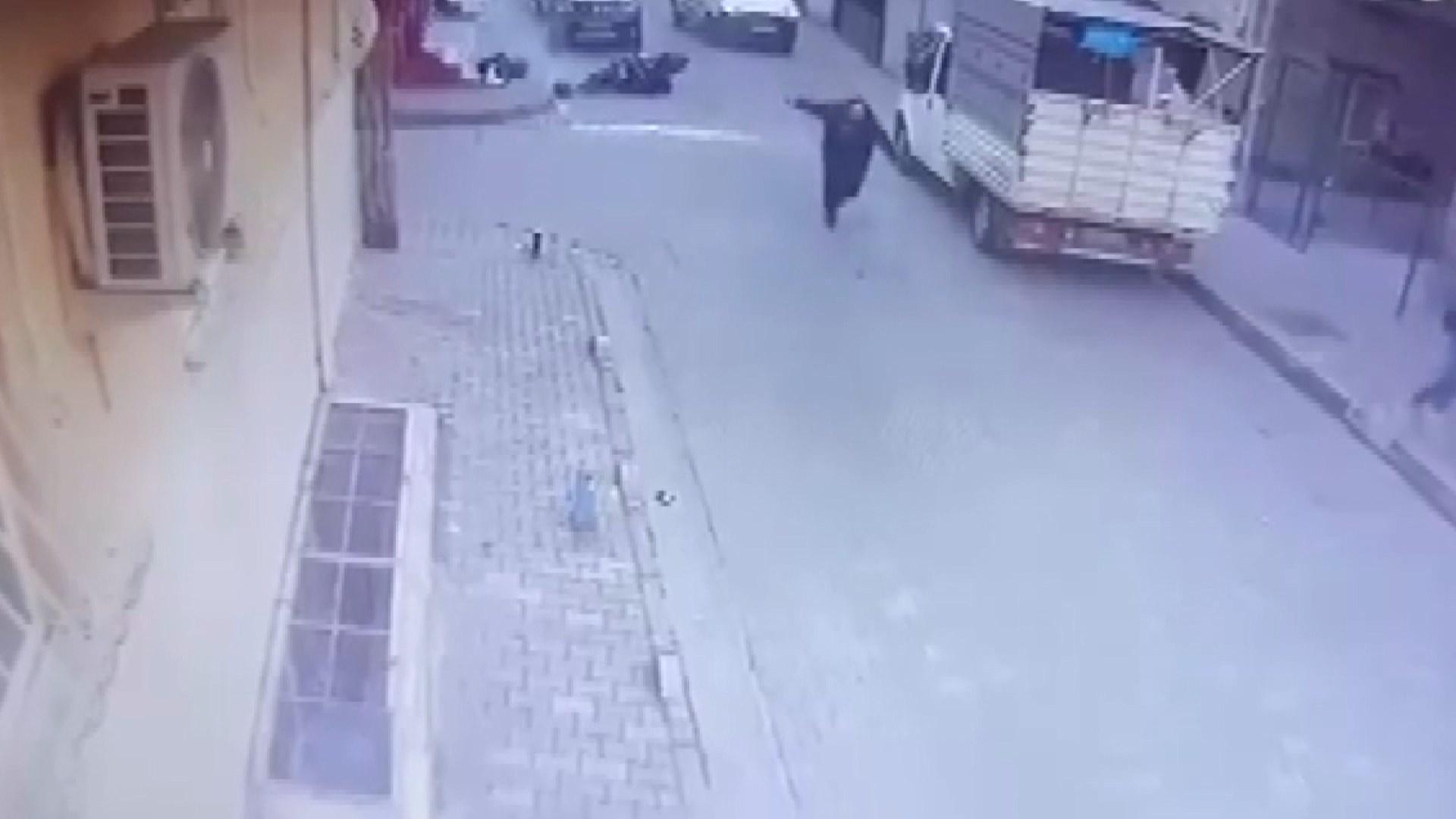 Saldırı sonrası H.A.' nın yere düşmesi ve saldırganların olay yerinden koşarak kaçması ise güvenlik kamerasına yansıdı. Görüntülerde silahlı saldırıya uğrayan H.A.'nın yere düştüğü anlar görülüyor. Bu sırada silahlı saldırıda bulunan şüphelinin koşarak olay yerinden kaçtığı anlar da görüntülerde yer alıyor.