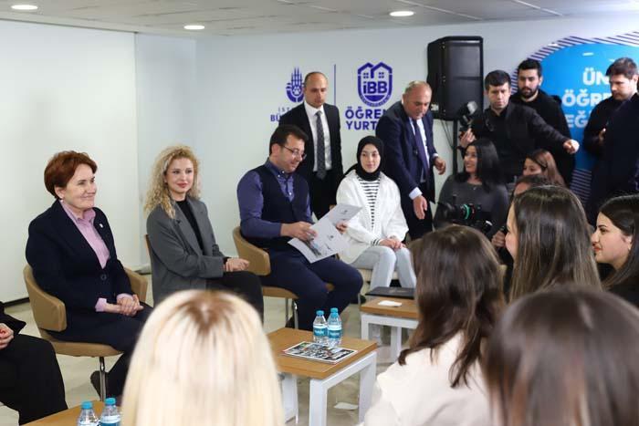 İYİ Parti Genel Başkanı Meral Akşener ve İBB Başkanı Ekrem İmamoğlu dün akşam Beyoğlu Örnektepe Öğrenci Yurdu'nda iftar programına katıldı. Öğrencilerin arasında olmaktan dolayı heyecan duyduğunu söyleyen Meral Akşener, "Hafif bir kalp çarpıntısı hissediyorum. Çok zor sormayınız lütfen. Bugün çok yorgunum. Yeteri kadar yordular. Biz 6 siyasi parti adına 'Millet İttifakı' dediğimiz bir sistemle ortak seçime gidiyoruz. Bunu iki parti olarak 31 Mart'ta denedik. Orada 11 büyükşehir belediyesi alındı ama İstanbul ve Ankara en atipik görünenleriydi. Hele İstanbul alınınca kalbi söküldü bazılarının. Orada sandığın korunmasının, seçmenin sandığa gitmesinin sağlanmasının, sadece gençlerden bahsetmiyorum bir de depremzedeler var çeşitli yerlere tahliye oldular. Biz bütçelerimizi birleştirerek, imkanlarımızı birleştirerek ve sandık başı açısından insan unsurlarımızı birleştirerek dün İstanbul'da Ankara'da diğer şehirlerde olduğu gibi iş birliği yapıyoruz. Dolayısıyla bu güç birleştirmesi sizlerin üzerindeki ekonomik yükü kaldıracak" dedi.
