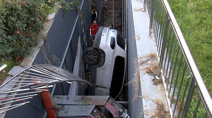 Park halindeki 9 araca çarpan cip, demir korkulukları kırarak yaklaşık 5 metre yükseklikten boşluğa düştü. Cipin sürücüsü araçta mahsur kalırken olay yerine sağlık, polis ve itfaiye ekibi sevk edildi. İtfaiye ekiplerinin yarım saatlik çalışmanın ardından bulunduğu yerden çıkardığı yaralı kadın, sağlık ekipleri tarafından hastaneye götürüldü.
