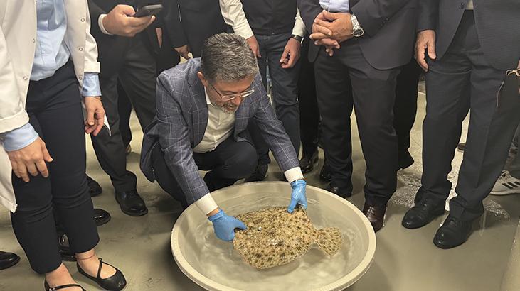 Yavru kalkan balıklarını yemleyen Yumaklı, Mersin balığı ve Türk somonu kafeslerinin bulunduğu alanda da inceleme yaptı.