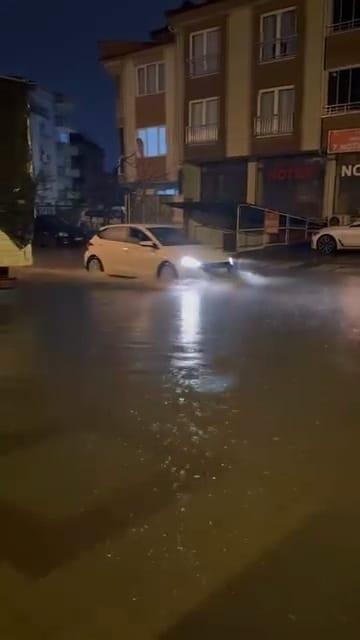 Bursa’nın İnegöl ilçesinde, akşam saatlerinde etkili olan sağanak yağış, hayatı olumsuz etkiledi. Kısa sürede şiddetini artıran yağış nedeniyle alt geçitler ulaşıma kapatılırken, bazı cadde ve sokaklar suyla doldu.