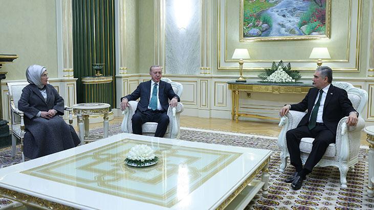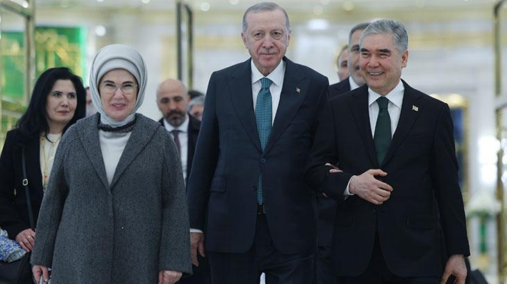 Cumhurbaşkanı Erdoğan ile eşi Emine Erdoğan, Dışişleri Bakanı Hakan Fidan, Enerji ve Tabii Kaynaklar Bakanı Alparslan Bayraktar, Cumhurbaşkanlığı İletişim Başkanı Burhanettin Duran, MİT Başkanı İbrahim Kalın, Cumhurbaşkanı Dış Politika ve Güvenlik Başdanışmanı Akif Çağatay Kılıç ve Türk Devletleri Teşkilatı Aksakallar Konseyi Başkanı Binali Yıldırım da Türkmenistan'a geldi.