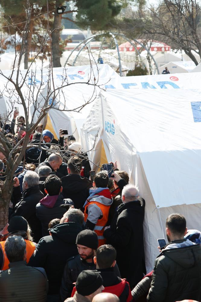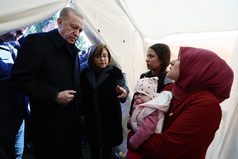 Kahramanmaraş ve Pazarcık ilçesi, Hatay ve İskenderun ilçesi ile Adana'da dün deprem sonrası çalışmalarla ilgili bilgi alan Erdoğan, afetzedelerle bir araya geldi.
