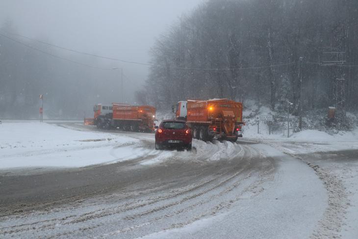 Yağışın aralıklarla devam ettiği bölgede, sisin de etkisiyle görüş mesafesi yer yer düştü. Bölgede kar kalınlığı 10 santimetreye ulaştı.