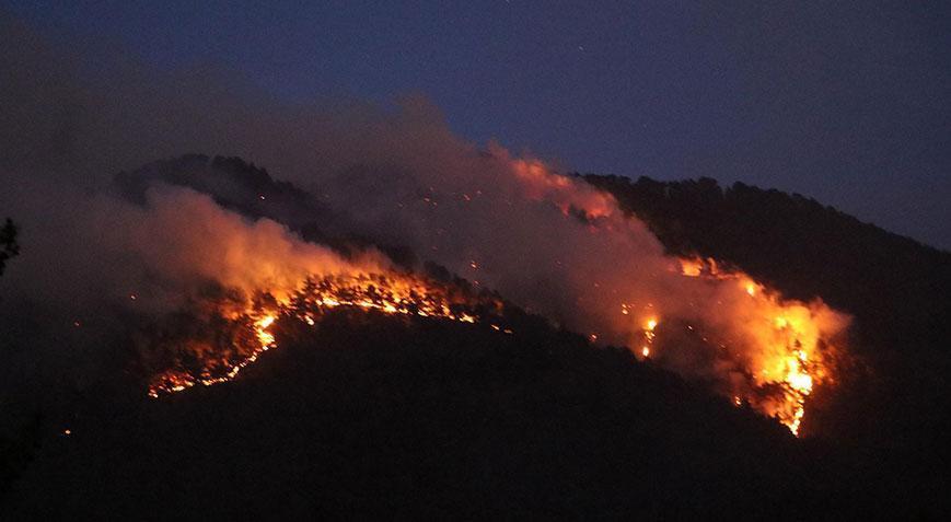 Denizli'nin Babadağ ilçesinde, saat 13.30 sıralarında başlayan ve kuvvetli rüzgar nedeniyle gündüz saatlerinde kontrol altına alınamayan yangın, gece saatlerinde de devam ediyor. Havadan müdahalenin, havanın kararmasından dolayı durdurulduğu öğrenilirken, yangının devam etmesi durumunda ise sabah saatlerinde müdahalenin tekrar devam edeceği öğrenilirken, yangına karadan müdahale sürüyor.