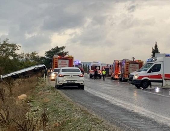 Kaza, saat 18.00 sıralarında Denizli-Buldan ilçesi karayolunda meydana geldi. İzmir’den Günübirlik tura katılanları taşıyan Cevdet Uça (49) yönetimindeki 35 CEJ 048 plakalı otobüs, Bölme Kaya Mahallesi yakınlarında kontrolden çıktı. Sürücüsünün direksiyon hakimiyetini kaybettiği otobüs yoldan çıkıp, devrildi. Çevredekilerin ihbarı üzerine olay yerine sağlık, itfaiye, polis ve jandarma ekipleri sevk edildi. Olay yerinde yapılan ilk müdahalede, yolculardan Güldane Altınova’nın (67) hayatını kaybettiği belirlendi. Kazada, yaralanan sürücü dahil 32 kişi ambulanslarla Denizli Devlet Hastanesi, Servergazi Devlet Hastanesi, Pamukkale Üniversitesi Hastanesi ve Buldan Devlet Hastanesi’ne kaldırıldı. Hastaneye kaldırılan yaralıların tedavisi devam ederken, 6’sının sağlık durumunun ağır olduğu öğrenildi.