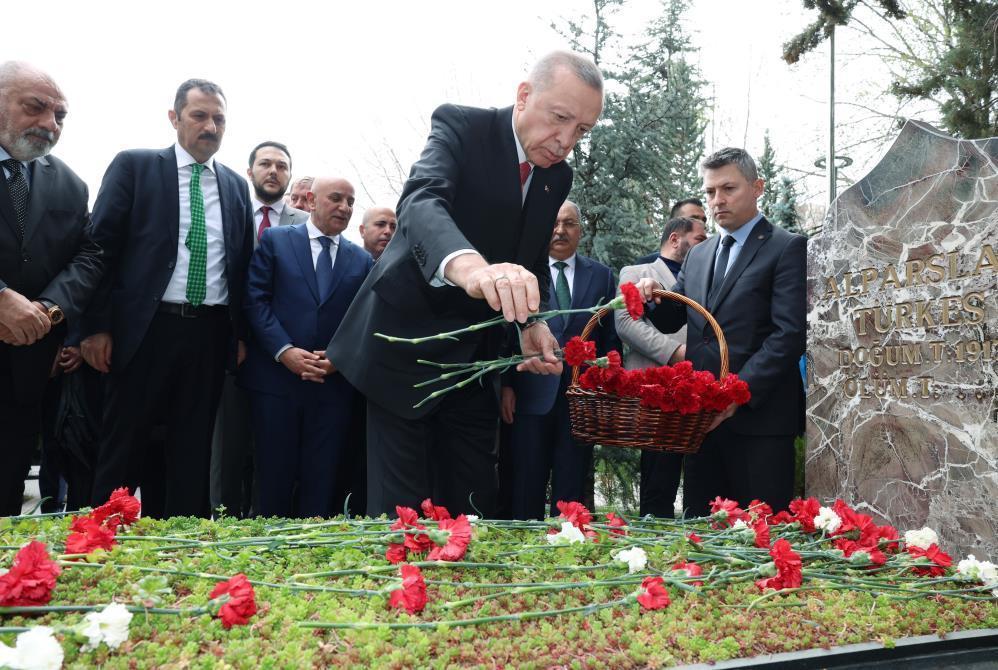 Cumhurbaşkanı Erdoğan, Alparslan Türkeş’in Beştepe'de bulunan mezarını ziyaret etti. Erdoğan'a burada Türkeş'in oğlu, AK Parti Ankara Milletvekili Yıldırım Tuğrul Türkeş eşlik etti.