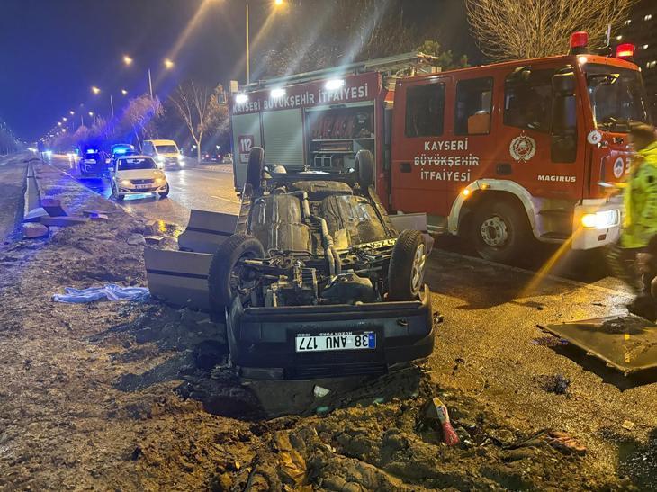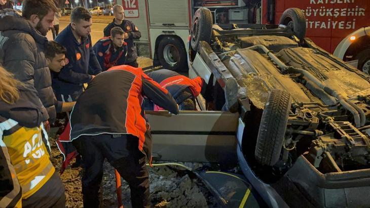 Edinilen bilgiye göre, ilçeye bağlı Erenköy Mahallesi Talas Bulvarı üzerinde meydana gelen trafik kazasında, A.H.B. yönetimindeki 38 ANU 177 plakalı otomobil sürücüsünün direksiyon hakimiyetini kaybetmesi sonucu yolun karşısına geçerek, takla attı.