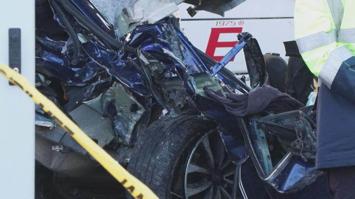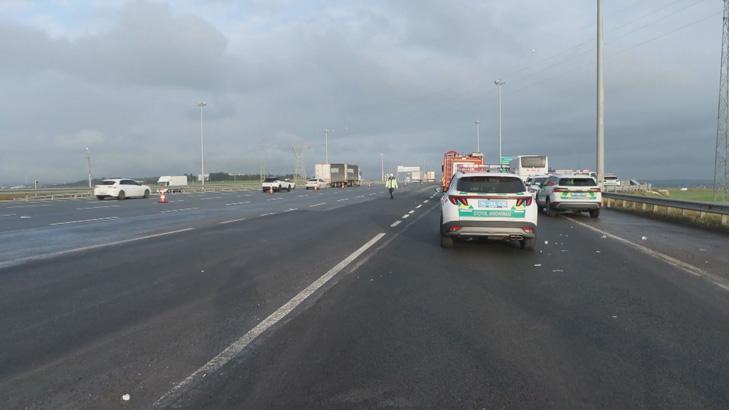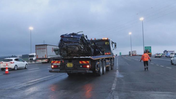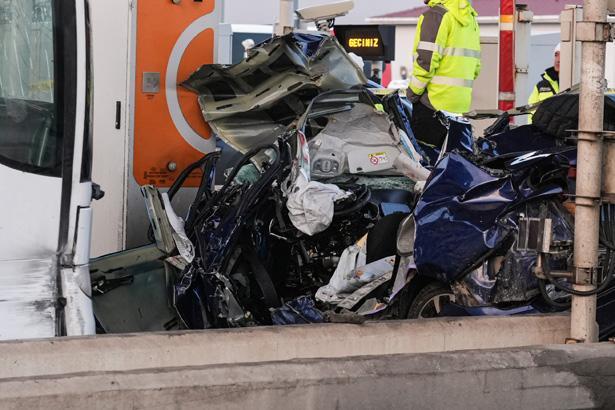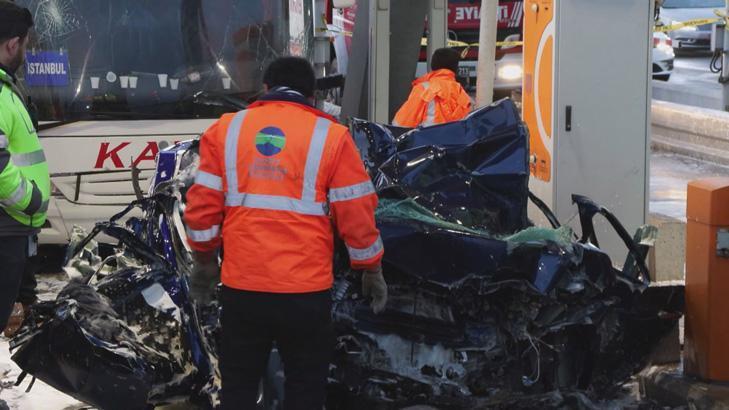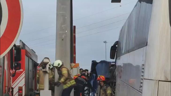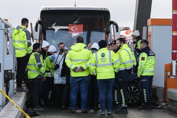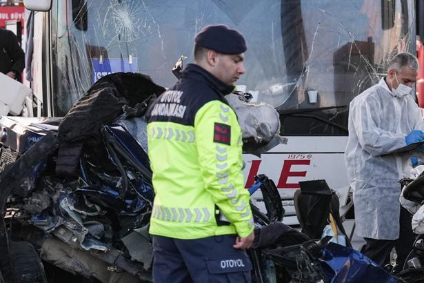Kuzey Marmara Otoyolu'nun Kınalı Gişeleri'nde 59 ALV 478 plakalı otobüs, 59 ADN 734 plakalı otomobile çarpmış, otomobil gişe ile otobüs arasında sıkışmıştı.