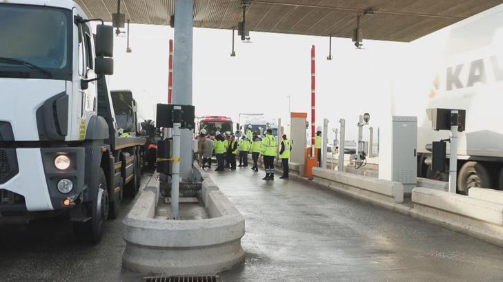 Araçlar gişelerin beton blokları arasında sıkıştı.