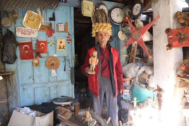 Atölyeye dönüştürdüğü evindeki odasında 300'ün üzerinde eser sergileyen Şengül, sabah erken saatlerde kalkıp dağa çıktığını, dere yataklarını da gezdiğini söyledi.