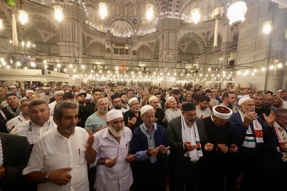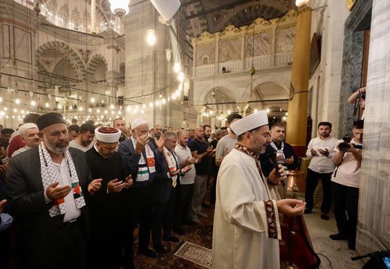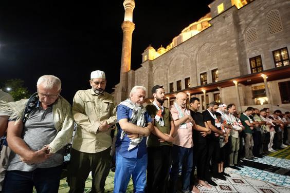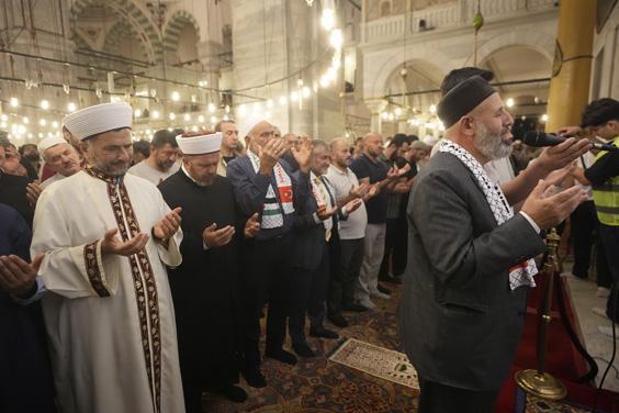 Ardından Filistinli Alimler Birliği Başkanı Nevvaf Tekruri ve Fatih Camisi imam hatibi dua etti. Camideki dua buluşmasına, AK Parti Mersin Milletvekili Nureddin Nebati, Cumhurbaşkanı Başdanışmanı İsrafil Kışla, Filistin'e Destek Platformu Başkanı Mehmet Güney ve çok sayıda vatandaş katıldı.