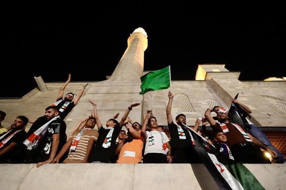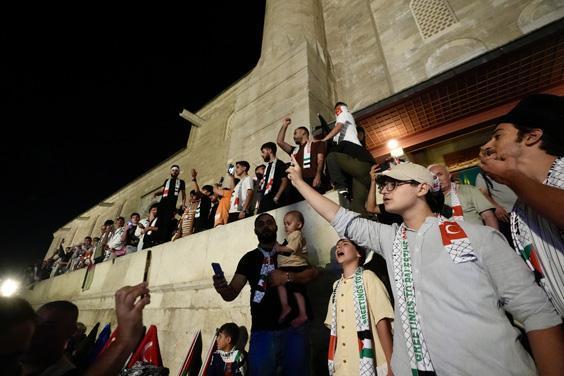 Dua sonrası ellerindeki Filistin bayraklarıyla cami avlusuna çıkan kalabalık, İsrail'in Gazze'ye yönelik saldırılarını sloganlarla protesto etti.