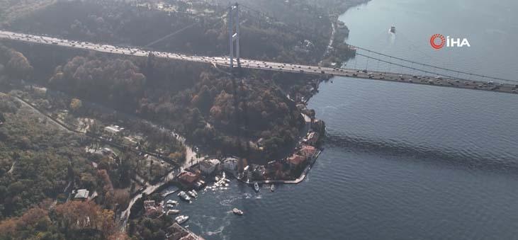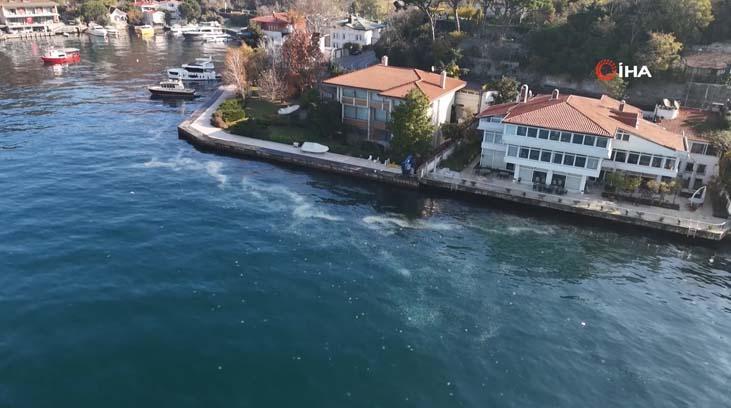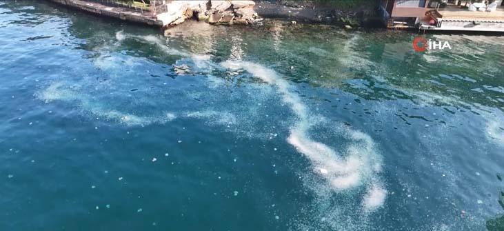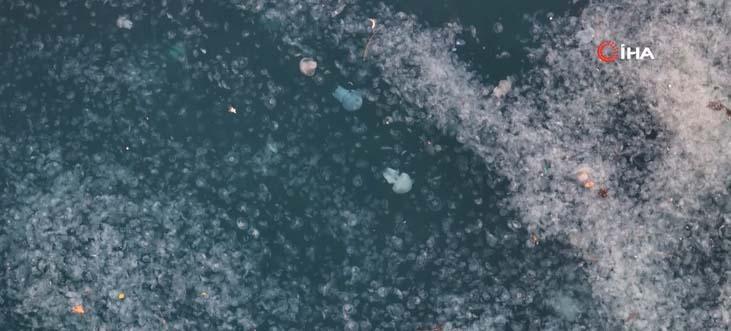 İstanbul’da kirlilik ve rüzgar etkisiyle kıyılarda çoğalan denizanaları sürüleri adete boğazı istila ediyor. Havadan görüntülenen Boğaz'da denizanası istilasının geldiği durum gözler önüne serildi. Tarihi yalıların boğaz manzarası deniz anasıyla kapandı.