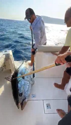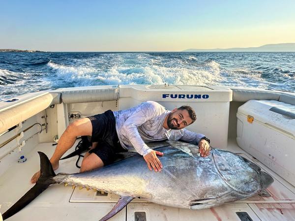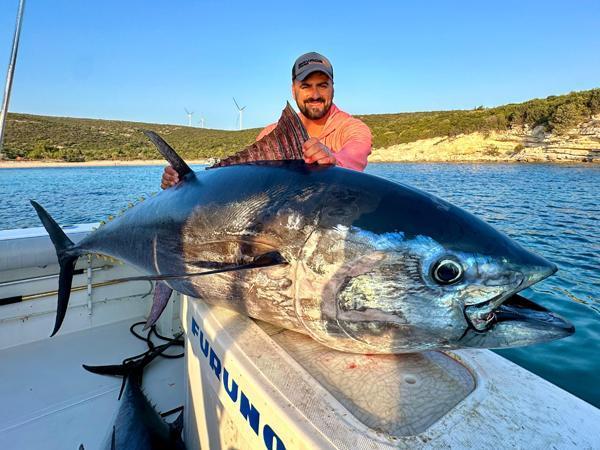 Antalya'da profesyonel olta balıkçılığı ve danışmalığı yapan Savaş Dursun, bu zamanlarda göç eden dev orkinosların izini sürerek teknesiyle İzmir Seferihisar açıklarına gitti. Yanındaki balık tutkunlarıyla birlikte denize misinasını salan Dursun'un oltasına, 3 gün içerisinde 200 santim üzerinde ve ağırlıkları 120,150 ve 160 kilo olmak üzere üç Mavi Yüzgeçli Orkinos takıldı.