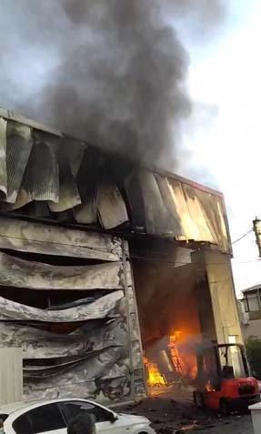 Görüntülerde, tesisten yoğun dumanların yükseldiği ve tesisin alev alev yandığı anlar yer alıyor.