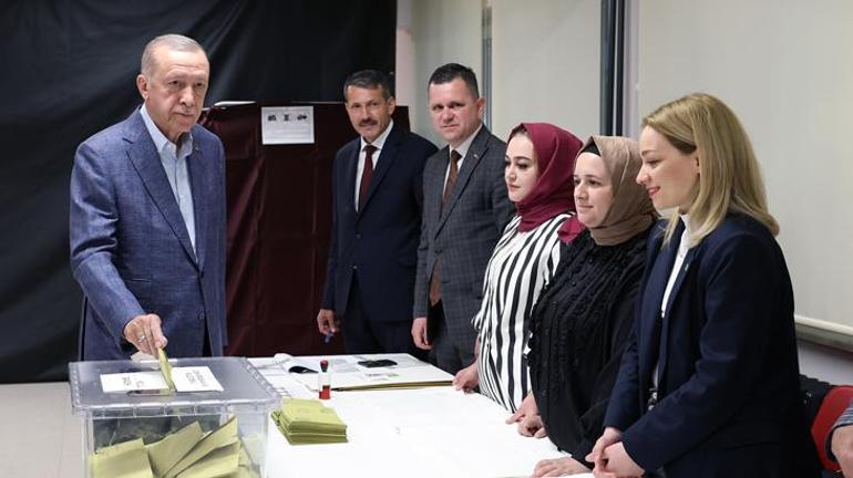 Cumhurbaşkanı Erdoğan ve eşi Emine Erdoğan İstanbul'da oyunu kullandı. Erdoğan açıklamasında şu ifadeleri kullandı: "Oyumuzu kullandıktan sonra söylenecek en önemli şey Türk demokrasisi için sabah saatleri itibariyle takipteyim. Olaysız, sıkıntı yaşanmadan süreç devam ediyor. En önemlisi deprem bölgesindeki oyların kullanımı idi. Vatandaşlarımız büyük şevkle oylarını kullanıyorlar. Burada da bir sıkıntı yok. Akşam sayımlardan sonra ülkemiz milletimiz için, Türk demokrasisi için hayırlısı ile bir geleceği niyaz ediyoruz. Bütün seçmenlerimizin akşam 17'ye kadar endişeye kapılmadan oylarını kullanmaları Türk demokrasisinin gücünü göstermesi anlamında çok önemli. Bütün sandık kurulu üyelerine başarılar diliyorum." dedi.