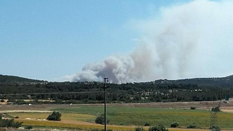 Gelibolu ilçesindeki bir tarım arazisinde saat 15.30 sıralarında yangın çıktı. Rüzgarın da etkisiyle alevler kısa sürede geniş bir alana yayıldı. İhbar üzerine bölgeye çok sayıda arazöz ve itfaiye aracı ile hava unsurları sevk edildi. Yangına havadan ve karadan müdahale ediliyor. (Fuat SERTDEMiR-Cihan BAYRALI/DHA)