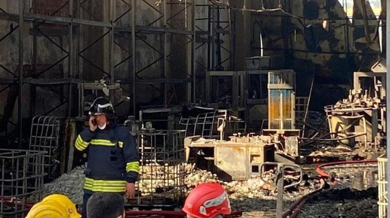 Kocaeli'nin Dilovası ilçesinde yangında zarar gören parfüm deposu, dronla görüntülendi.