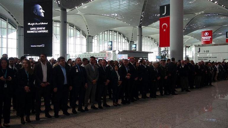 Türkiye Cumhuriyeti'nin kurucusu Mustafa Kemal Atatürk'ün ebediyete intikal edişinin 87'nci yıldönümünde İstanbul Havalimanı'nda töreni düzenlendi. Havalimanının Dış Hatlar Gidiş Terminali'ne Türk bayrağı ile Atatürk portresi asıldı. Tören öncesinde Türkçe ve İngilizce anonslar yapıldı. Çok sayıda havalimanı personeli ve yolcu törenin düzenlendiği alanda toplandı. Havalimanı çalışanları ve yolcular saatler 09.05'i gösterdiğinde sirenlerin çalmasıyla 2 dakikalık saygı duruşunda bulundu. Yabancı yolculardan bazıları da saygı duruşuna eşlik etti. İstiklal Marşı'nın okunmasının ardından tören sona erdi.