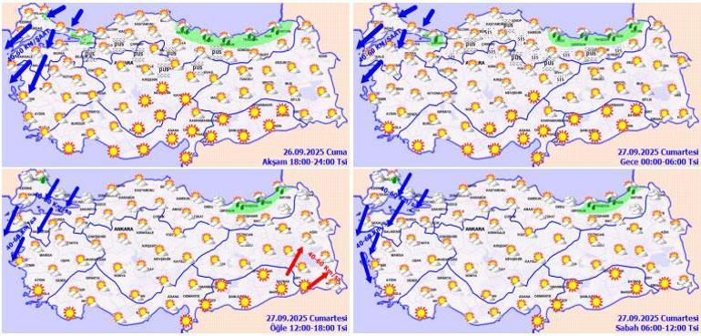 Öte yandan bir uyaı da İstanbul Valliğinden geldi. 'Marmara’da Beklenen Kuvvetli Rüzgâra Dikkat' başlığıyla yapılan açıklamada; "Meteoroloji Genel Müdürlüğü’ne göre; 26.09.2025 Cuma ve 27.09.2025 Cumartesi İstanbul’da rüzgârın, kuzey ve kuzeydoğu yönlerden kuvvetli rüzgâr ve fırtına (40-60 km/saat, yer yer 60-80 km/saat) şeklinde esmesi bekleniyor." ifadelerine yer verildi.