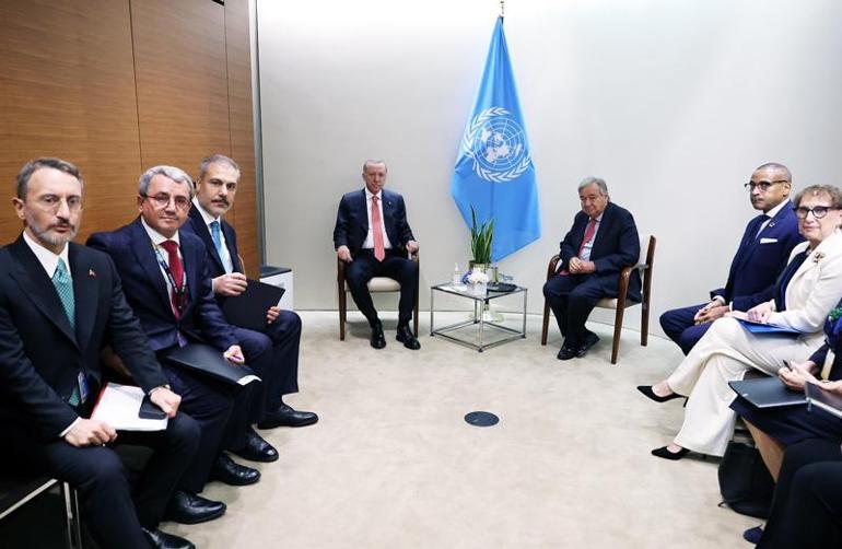 Birleşmiş Milletler (BM) 79. Genel Kurulu'na katılmak üzere New York'ta bulunan Erdoğan, temaslarını sürdürüyor. Erdoğan, genel kurula hitabının ardından BM Genel Merkezi'nde Guterres ile görüştü.Görüşme, basına kapalı yapıldı.