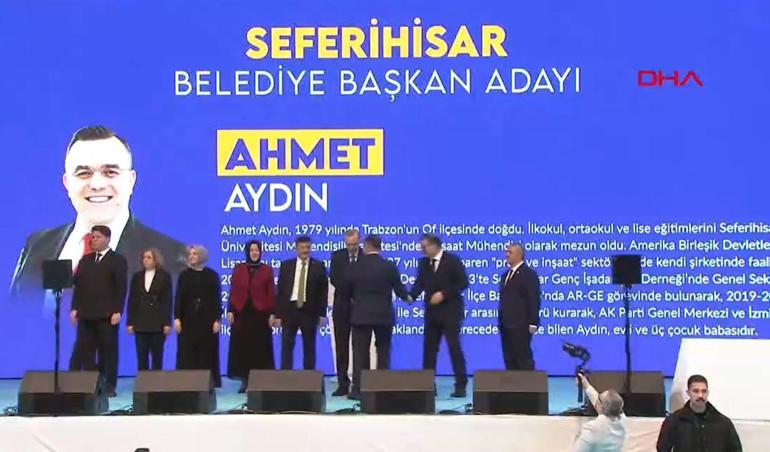 Yerel seçim startını veren AK Parti, İstanbul ve Ankara'nın ardından İzmir'in ilçe adaylarını duyurdu AK Parti İzmir Büyükşehir Belediye Başkan adayı Hamza Dağ olurken Halkapınar Spor Salonu'nda düzenlenecek tanıtım toplantısında, Cumhurbaşkanı Recep Tayyip Erdoğan ilçe adaylarını tek tek sahneye davet edip kamuoyuna tanıttı.