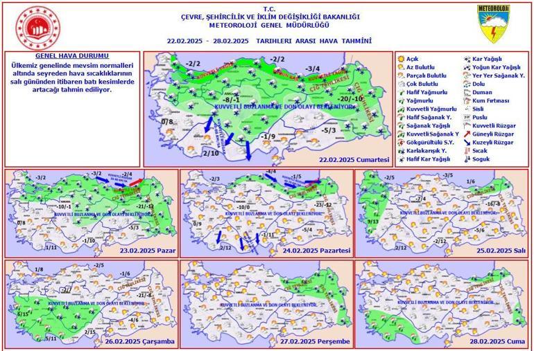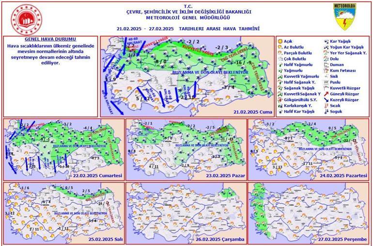 ÇIĞ TEHLİKESİ İLE BUZLANMA VE DON OLAYI UYARISI: Doğu Karadeniz’in iç kesimlerinin yüksekleri ile Doğu Anadolu'nun doğusunun dik ve eğimli yamaçlarında çığ tehlikesi ile yurdun kuzey, iç ve doğu kesimlerinde yer yer kuvvetli olmak üzere buzlanma ve don olayı beklendiğinden meydana gelebilecek olumsuzluklara karşı dikkatli ve tedbirli olunması gerekmektedir.