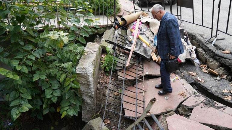 Dükkan sahiplerinden 66 yaşındaki emekli öğretmen Mehmet Çelebi, "Belediyeye başvurdum ancak apartman sakinlerinden istinat duvarı yapılması yönünde karar çıkmadığı için müdahale edemiyorlar. Durumu belediyeye şikayet ettim, cezai işlem uygulanması için başvuruda bulundum" dedi.