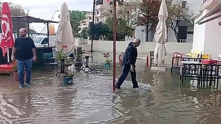 İzmir'in Foça ilçesinde etkili olan sağanak yağış hayatı olumsuz etkiledi. Araçlar sel sularında sürülendi, birçok ev ve iş yerini su bastı.
