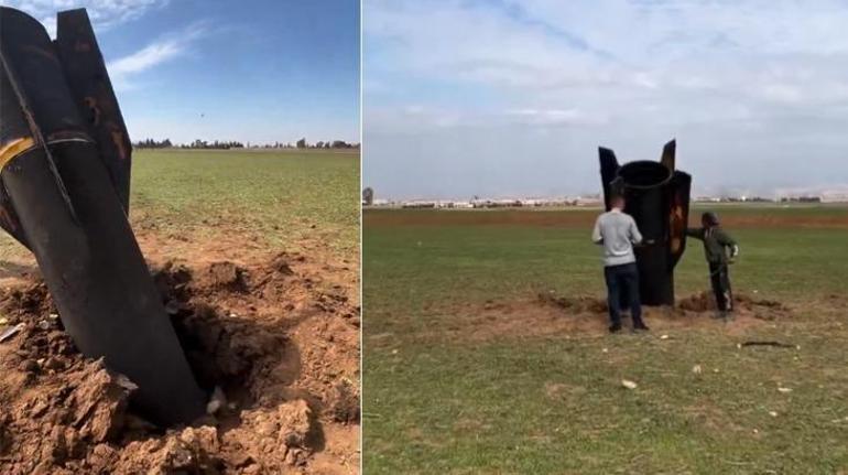 Öte yandan Suriye'nin kuzey doğusundaki Kamışlı'ya düşen füze parçası da görüntülendi.